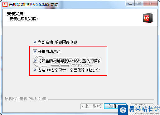 2、安裝完成后會有幾個選項,這里都勾掉吧,修改你的主頁跟安裝360的,不需要就別勾了。