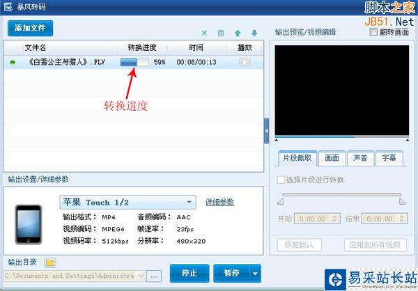 使用方法也很簡單,打開要轉換的文件,選擇輸出設置中的類型,格式,視頻參數,音頻參數,點擊開始,還可以對文件的播放時間圖像比例聲音大小等進行選擇。