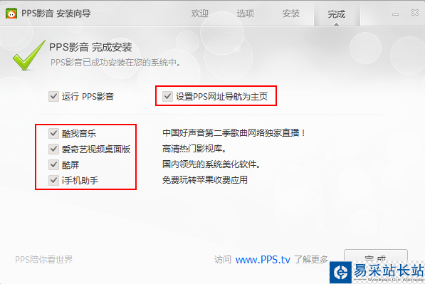 1、下載PPS影音并安裝程序,安裝PPS的時候會捆綁安裝PPS游戲中心,這個不需要桌面快捷方式就勾掉。