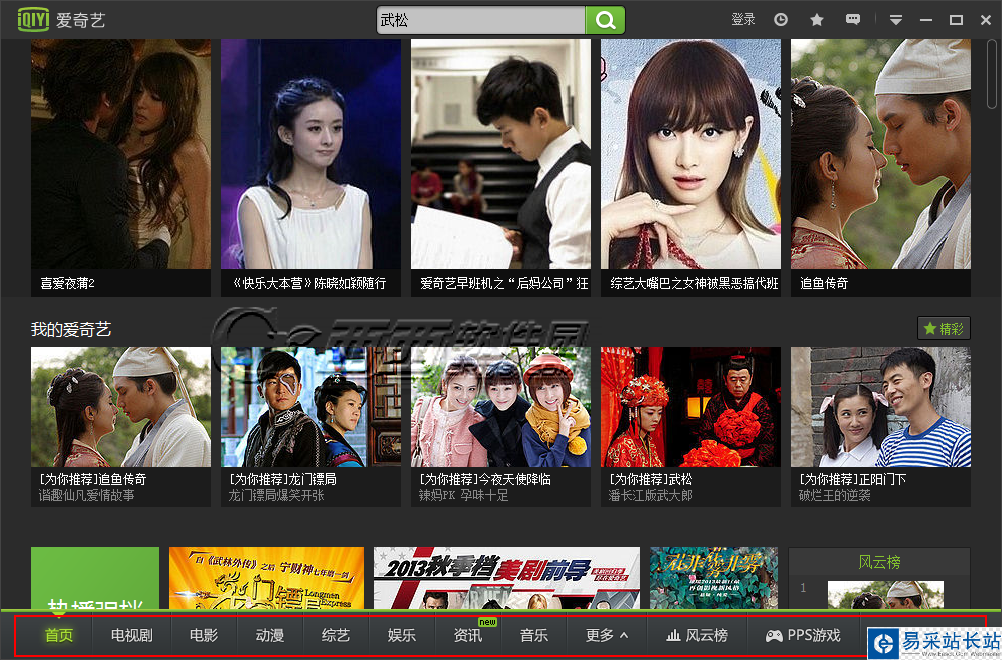 2、安裝完畢后打開奇藝播放器,選擇自己要下載的視頻,奇藝的標題欄跟其他視頻軟件不一樣是在下面,我們可以在上面搜索想要下載的視頻。