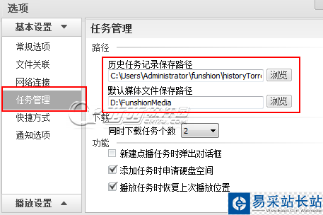 5、關于下載的默認路徑可以通過右鍵托盤圖標選擇設置,點擊任務管理進行下載的相關設置。