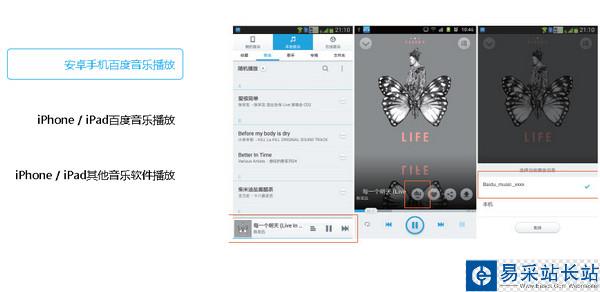 第三步用音樂APP向音樂盒推送音樂(如果家中沒有路由器也可以將百度無線音樂盒當無線路由使用哦!)