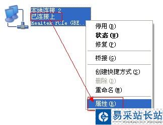 2、選擇當前聯網的網絡選項,右鍵點擊,選擇“屬性”打開。
