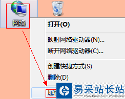 1、右鍵點擊桌面“網絡”,選擇“屬性”打開。