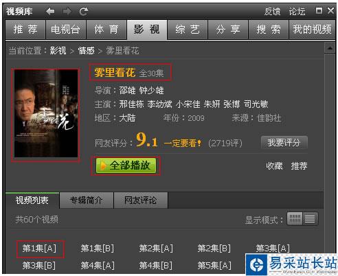 (2)點擊“播放全部”按鈕,也可播放該專輯下的所有視頻內容。