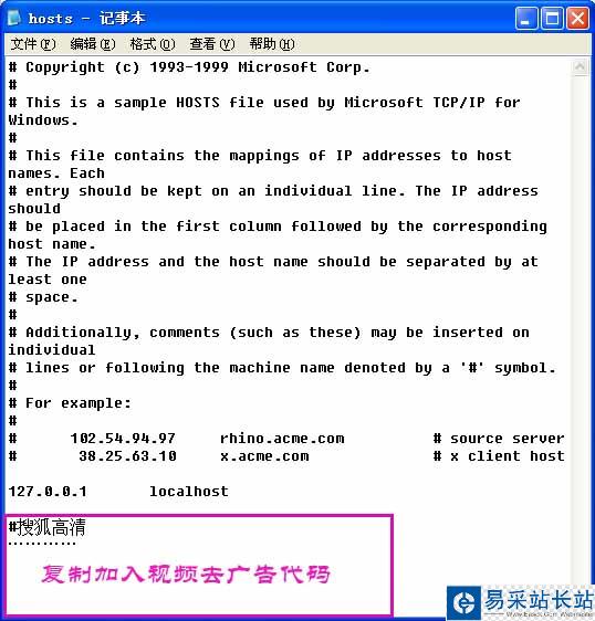 1、搜狐視頻的廣告有15-45秒不等,之前只有通過升級搜狐會員的方法,才可以去掉視頻片頭廣告。現在只要下載視頻去廣告代碼文本,然后添加到hosts文件最下面,保存即可。