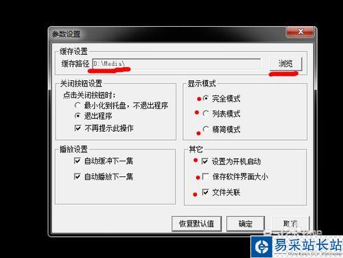 關(guān)于播放器的設(shè)置,你可以點擊右側(cè)按鈕(如圖)。你可以選擇各種設(shè)置,緩存地址、開機自動運行等。