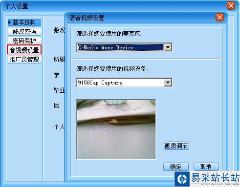 第三步:在語音視頻設置對話框里,選擇要使用的視頻設備,點擊確定后完成設置。