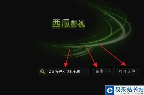 然后,我們可以搜索電影,在中間輸入“電影名稱+西瓜影視”點(diǎn)擊百度一下,同時(shí)我們還可以點(diǎn)擊“打開文件”打開我們電腦上的視頻文件。