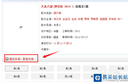 3隨便點(diǎn)擊一個(gè)進(jìn)球之后,找到如下圖會(huì)有一個(gè)“播放來源影音先鋒”如下圖,點(diǎn)擊需要查看的集數(shù)