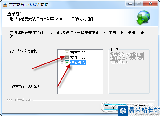 2、然后再安裝的時候,下面會顯示快播核心,我們可以點擊勾上。
