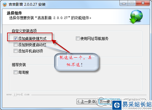 下面的選項,只要選擇“添加桌面快捷方式”即可,其他不用選!