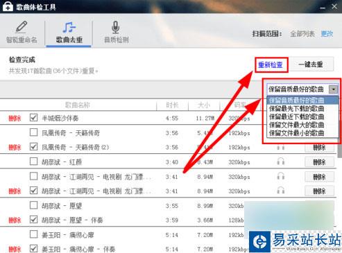 所以在刪除的時(shí)候,我們選擇篩選條件“保留音質(zhì)最好的歌曲”等等。