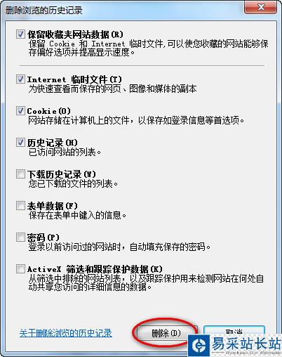 在 Internet 選項設置窗口中點擊“刪除”按鈕