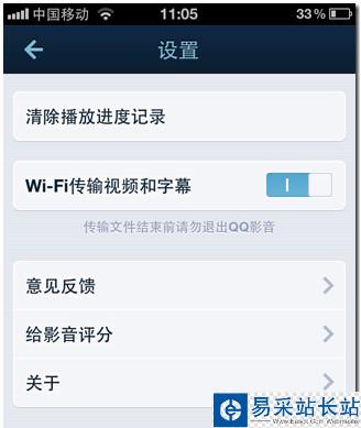 第二步:打開蘋果設置上的QQ影音,并且開始Wi-Fi傳輸視頻和字幕.