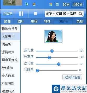 2)設置攝像頭畫面“采集大小”(默認320*240),顯示比例,瘦臉塑身拉伸率以及關閉虛擬視頻時顯示“默認圖片”的選擇。
