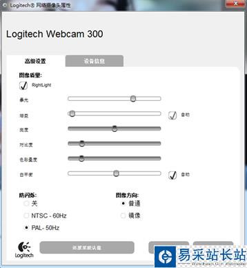 3)“畫質調整”可以打開攝像頭驅動系統調整畫面進行調節(調整并保存完后要點擊“應用”按鈕方能生效),如圖所示: