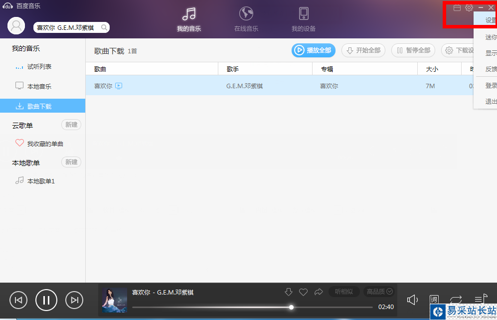 3、當然我們也可以自定義設(shè)置下載歌曲保存的位置,具體方法如下:
