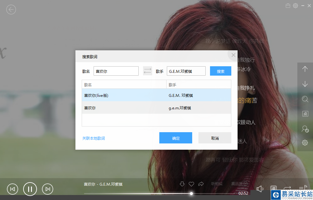 當然你也也可以本地歌詞文件,在左下角選擇關聯本地歌詞,打開之后,即可立即生效。