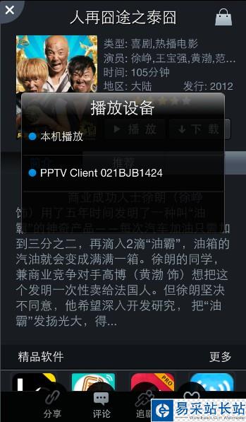 3. 打開推送終端的PPTV客戶端,點擊播放,選擇接收終端播放。