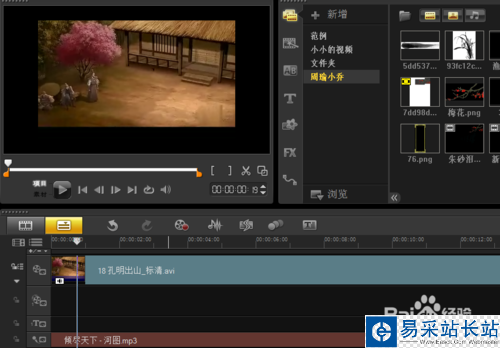 5、接著,打開會聲會影。把事先剪輯好的視頻以及圖大的音樂分別添加的視頻軌和音樂軌、