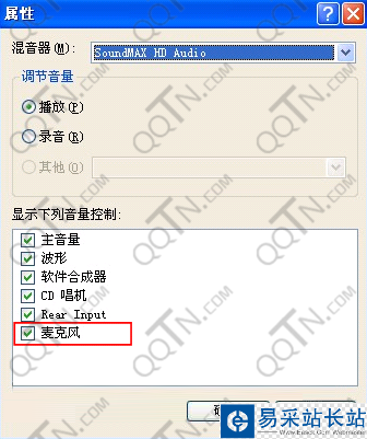 如果存在該項,則勾選上這一項。如果該項沒有,則說明聲卡不支持麥克風和耳機直連。點擊“確定”,音量控制面板會變成如下: