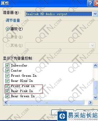 C)在該面板中,確認已經勾選上了 “輸入監視器”.有些機器上 叫做“麥克風”或者Front Pink In和Rear Pink In選項