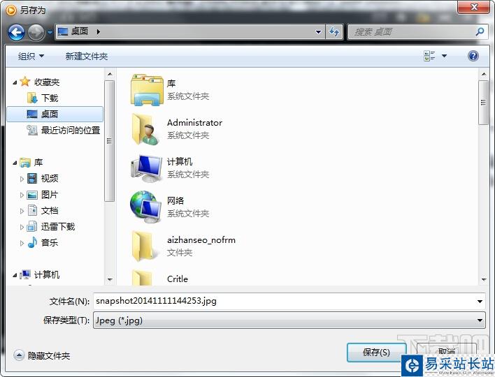 3、點擊之后,播放器會要求你保存一下圖片,選擇你想存放的地方。例如,小編把圖片放在存在桌面。另外,在這里的話,截圖只提供兩種保存方式,一種是bmp,另一種是jpg。后一種是我們常用的,不過是略有壓縮的。