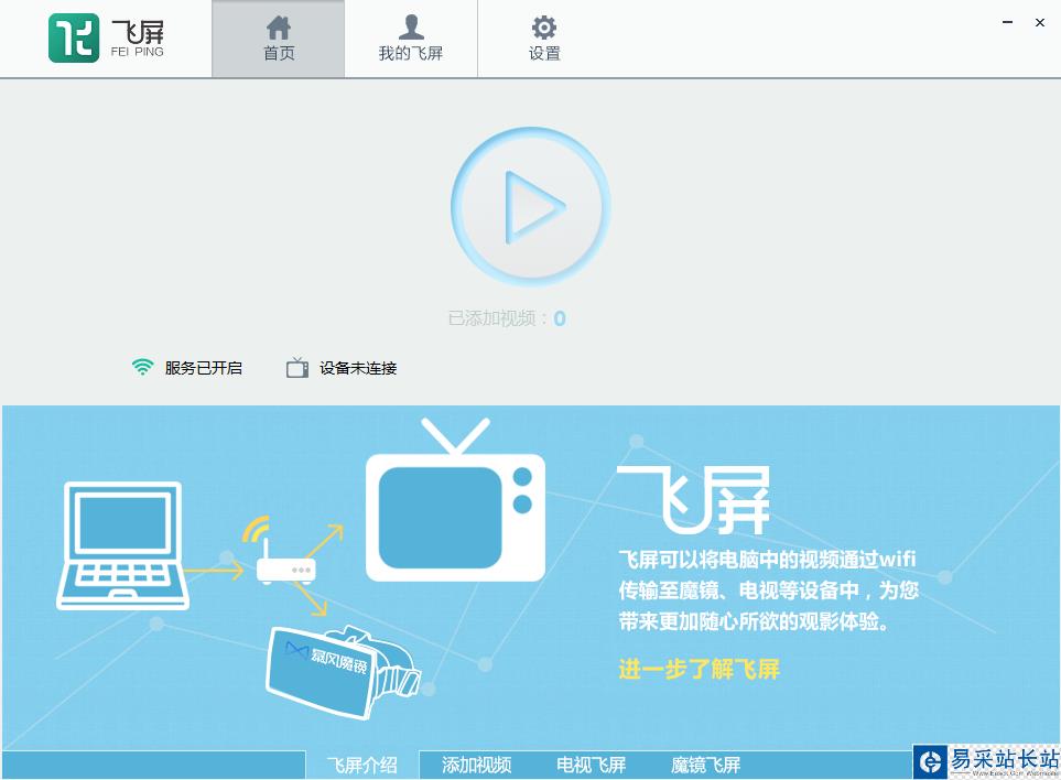 1、打開進入電腦中的飛屏客戶端,點擊頂部“我的飛屏”按鈕。