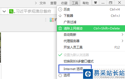 退出搜狐影音后啟動IE瀏覽器,選擇“工具—Internet選項(xiàng)”。如圖: