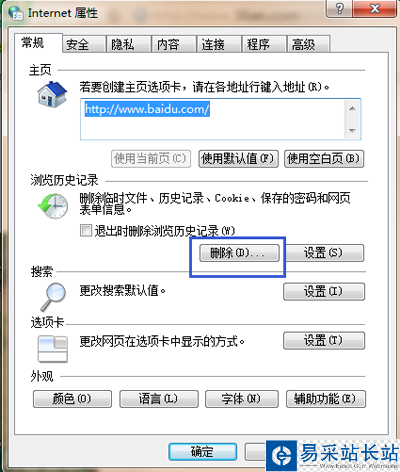 3、點(diǎn)擊“瀏覽歷史記錄—刪除” 按鈕。如圖: