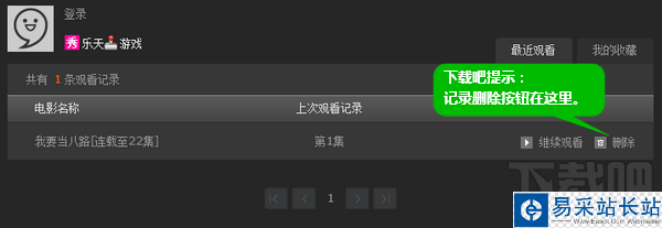 2.點擊想刪除的播放記錄后面的刪除按鈕即可。