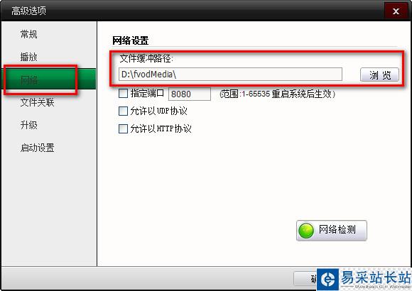 2、左側菜單選擇網絡、就可以看到文件緩沖路徑,點擊瀏覽即可找到已經下載好的電影