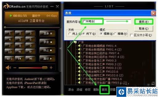 一、在版面底部點擊“查找”然后輸入“關鍵詞”來查找其他的臺電或歌曲名,因為列表實在是太多臺電和類目了,一個個翻看也費時間。