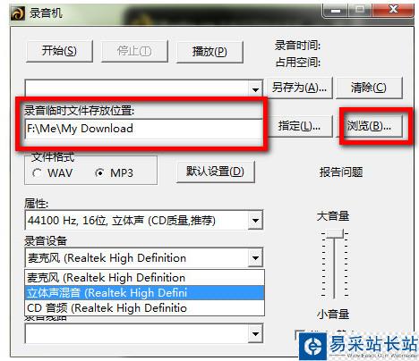 第三步:等待錄音完成后右鍵鼠標“選擇錄音機”就在彈出的版面點擊“瀏覽”就可以查找到錄音下載好的歌曲,或者你也可以更改錄音保存位置和設置其他參數。