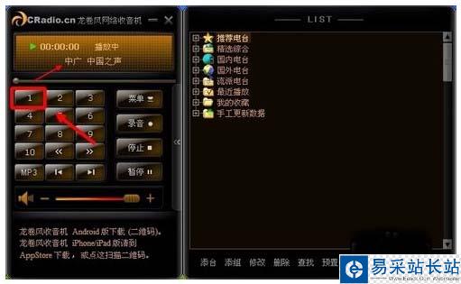 第一步:先安裝(安裝步驟就不跟大家分享了),打開收音機,在右邊列表選取電臺,任意點擊要收聽的電臺,即可在線播放