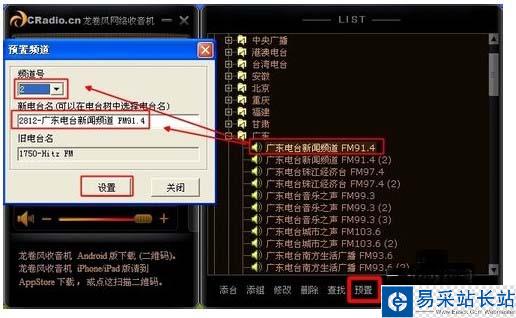 第一步:首先點擊底部的“設置”再選擇“頻道號”然后找到你經常聽的頻道,雙擊即可自動將頻道替拖入框內在點擊“小版面的設置”進入設置下一個頻道號。(將自己喜歡和經常聽的頻道設置快捷鍵在主板面,等下次打開收音機時只需點九宮格的某個數字時即可馬上收聽,再也不用從列表尋找了。)