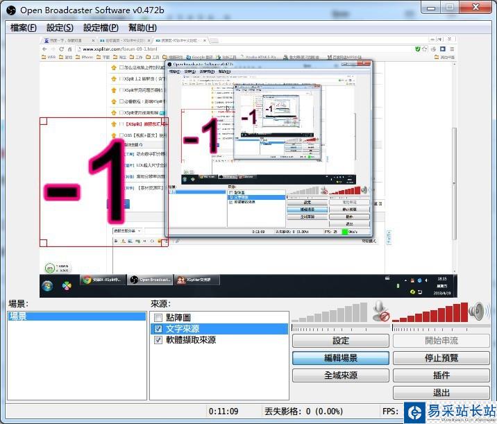 OBS可以像XSplit那樣直接在畫面框里用鼠標調整素材的大小。