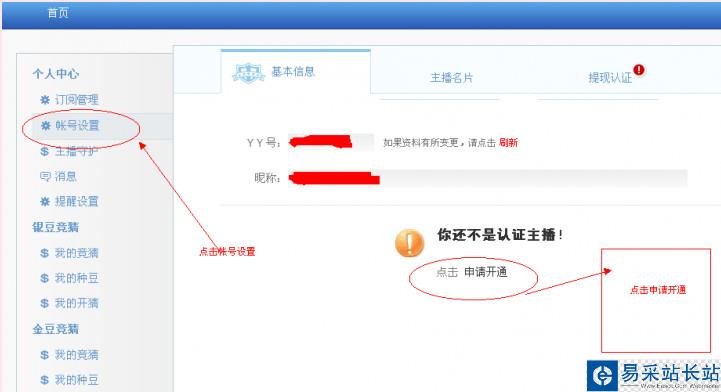 5、出來的頁面中分別有個人中心、 銀豆競猜、金豆競猜在個人中心賬號設置中 出現基本信息 里面的申請開通 進行點擊 會出現