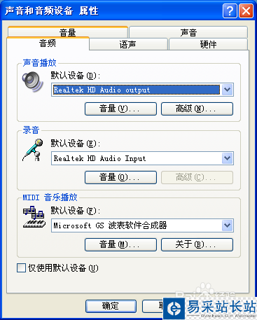 5、點開之后,你會看到,有一個默認設備(E),下面有個音量選項,左鍵單擊點開。