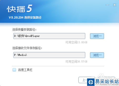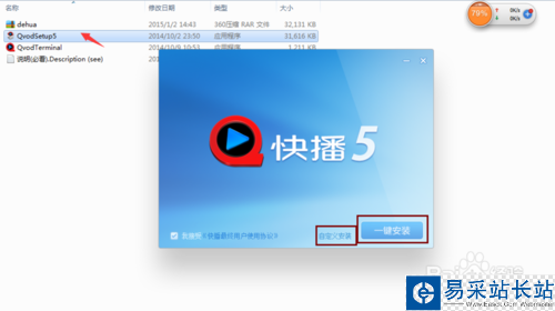 2、雙擊QvodSetup5開始安裝,有自定義安裝和快速安裝,大家隨意選擇一種方式安裝,但一定要記住你安裝的文件夾位置。后面會用到。