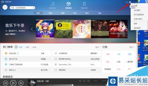 1、打開電腦版的百度音樂播放器,點擊右上角一個齒輪狀的圖標,即“設置”圖標。