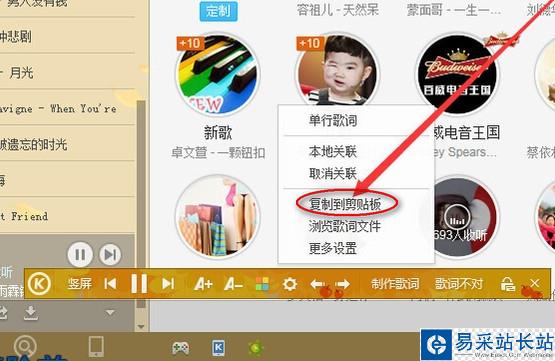 4、我們點擊歌詞設置,選擇復制到粘貼板