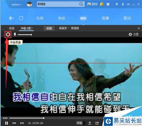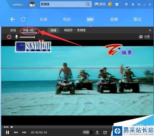 4、在MV播放的時(shí)候, 我們點(diǎn)擊做上方的“伴唱(K歌)”,就能消除原音。