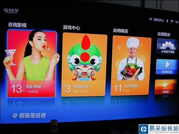 這個盒子搭載的是央廣銀河互聯網電視的集成播控平臺(GITV)。界面與之前小米盒子基本類似。據稱,在使用了銀河互聯網電視平臺后,小米小盒子的在線視頻內容時長提升到了14萬小時。主流的影視節目都可以在線觀看。