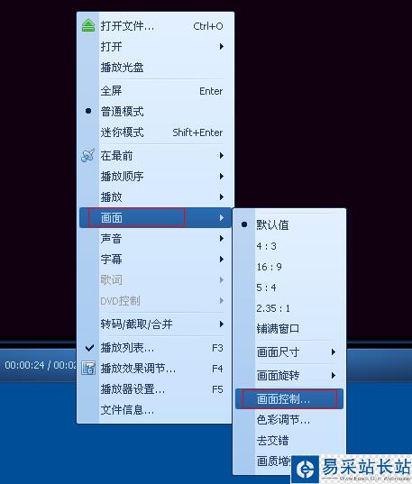 1、用qq影音打開視頻,鼠標移動到視頻畫面上方,點擊鼠標右鍵,選擇【畫面】