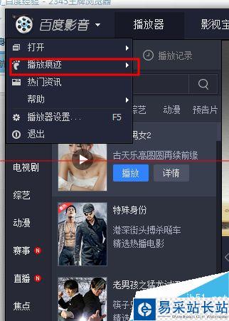 2、在【主菜單】下,點(diǎn)擊選擇【播放痕跡】選項(xiàng)。(如圖所示)