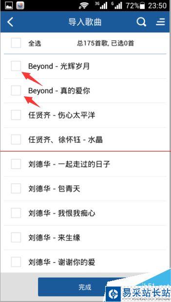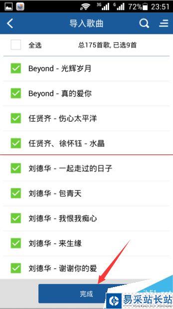 7、根據你的需要將所有的歌曲選好后,點擊頁面下方的”完成“按鈕。