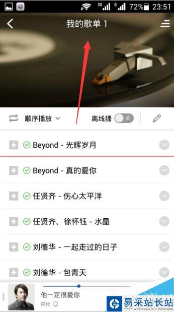 8、這時,你剛剛新建的歌單里已經有了一些歌曲,類似你新建了一張專輯的感覺。你可以順序播放聽歌了。