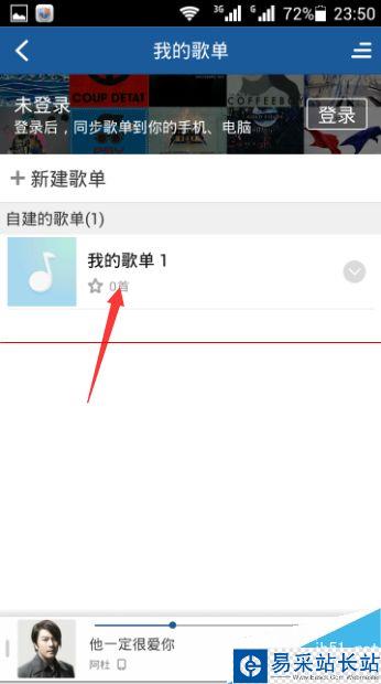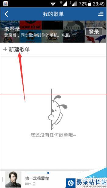 2、進入后,左上角出現”新建歌單“項,點擊該項目,如圖所示
